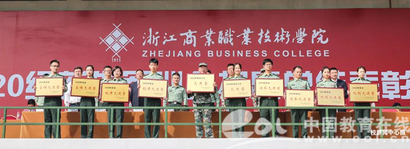 党委书记何瑶伟向部队赠送锦旗,向承担此次军训任务的全体教官表示崇高的敬意和衷心的感谢。浙商院2020届新生军训表彰大会至此落下圆满帷幕。
