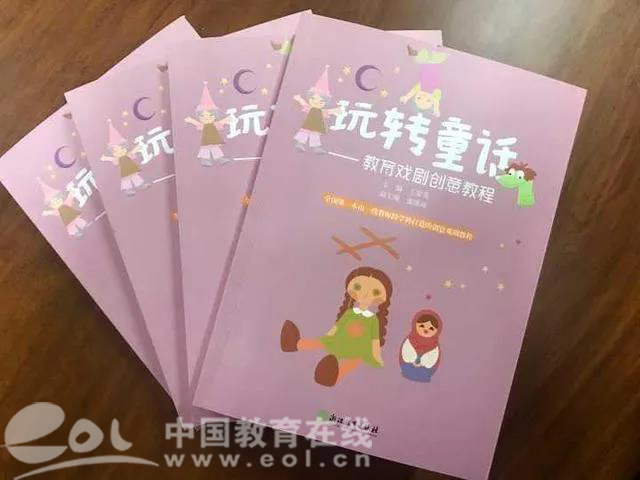 为了能够更好地开设戏剧课程,更好地发挥戏剧的育人功能,王校长带着老师们,创编了一本戏剧课程教材。2017年,这本由天地编写的《玩转童话——教育戏剧创意教程》在上城区戏剧节上首发。值得一提的是,这是目前全国首本教育戏剧教程书。