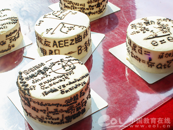 杭电通信工程学院大三学生蔡皓宇坦言,面前的12寸蛋糕,外表上的笔记“比自己写的好看”,又是用巧克力酱、草莓酱绘的,真有点舍不得吃。