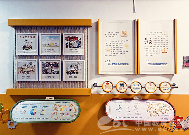 “小小理财家”展览由中国财税博物馆负责策划布展,位于杭师附小教学楼一层走廊,在有限的空间内呈现“从贝到财——货币”“大家的财——财政”“自己的财——理财”三部分内容,梳理货币演变简史,展示财政税收与国家治理、公共生活的密切联系,突出小处着眼的理财实践,在立足财税历史特色的同时融入感官互动体验,设立“手账设计小能手”作品开放式展示区域,在内容安排、形式表现、整体设计上与浙江省自然博物馆贝壳展览保持有机衔接,力争使相对抽象的财税主题能符合孩子们的认知、贴近孩子们的生活、引起孩子们的兴趣,真正做到播撒种子、润物无声。