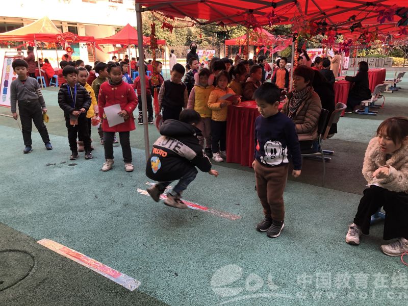 第四关,“金牛行大运”。“哇!太厉害了!”从另一个帐篷里,不时地传来一声声赞叹声。孩子们在规定时间里完成了跳绳、拍球、跳远等项目。想要健健康康迎新年吗?那可要重视体育锻炼,新年也要多运动。