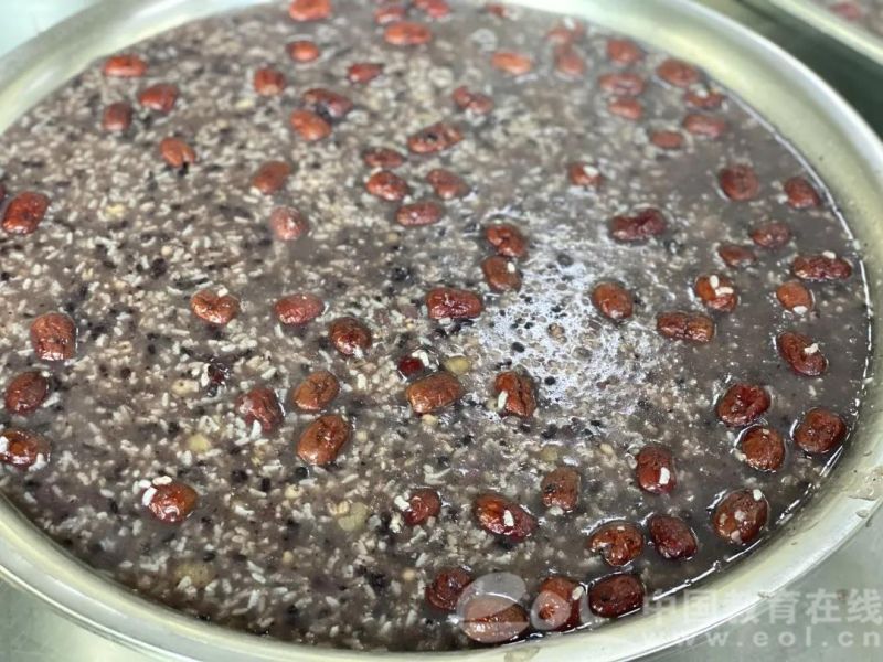 腊八粥里话腊八,为了让学生更了解我国的传统节日文化,育才京杭小学自建校以来每逢腊八节都会为学生准备一份腊八粥。为了熬制香甜可口的腊八粥,食堂师傅们前一天晚上就准备了红枣、花生、糯米、红豆、桂圆等食材,洗净泡好待用,今天一大早就开始起锅做粥。在食堂师傅们的精心准备下,一锅锅香喷喷、热腾腾的腊八粥纷纷出炉,装在小碗里,送到孩子们的手中。