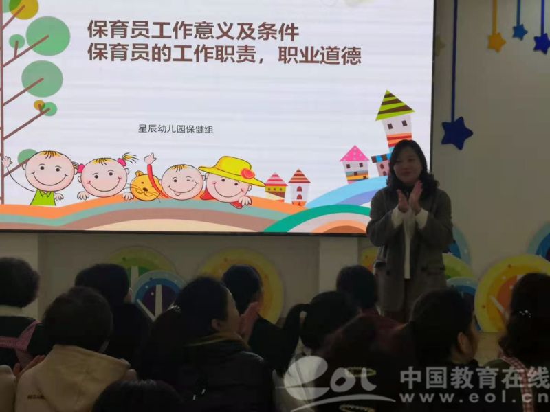 金宝搏188入口 浙江站讯 (实习记者 鲁少辛)师德师风建设永远在路上,近期,杭州市星辰幼儿园开展了一次保育员 “不忘初心、凝心聚力、做新时代有温度的星辰人”为主题的师德师风建设会议,进一步加强师德师风建设,创建有爱、和谐的保育队伍,实现保育员与教师队伍的综合素养相得益彰、同步提升。本次培训活动从保育员的职业定义入手,阐述了保育工作的重要性,以及保育工作的职责。