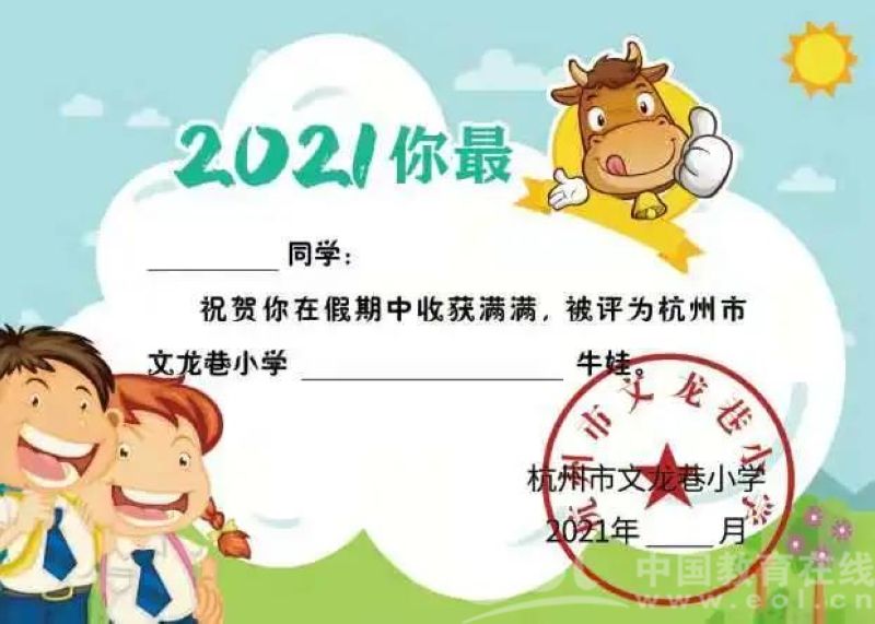 每个孩子都是值得我们挖掘的宝藏,让家长来推荐孩子参评“2021我最牛”活动,有的同学是“劳动小牛娃”,有的同学是“安全小牛娃”,还有爱好美食会做美食的同学被评为“吃货小牛娃”……我们对孩子的寒假生活进行了有趣的、多元化的评价,拿着“放大镜”发现每个孩子的优点,让这个优点成为激发孩子们在新学期前进的动力,开启快乐的新学期。