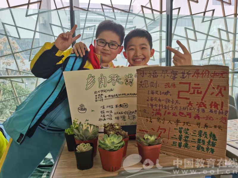 除了学生摊位外,胜利实验学校还设置了各科教师的摊位,以游戏、学科相关的商品,为孩子提供不同形式的奖励。