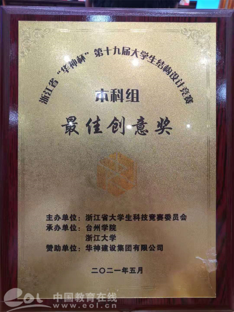 金宝搏188入口 浙江站讯 (实习记者 鲁少辛 通讯员 孙清梅 屈红娟)近日,在2021浙江省“华神杯”第十九届大学生结构设计竞赛暨全国大学生结构设计竞赛浙江省分区赛上,浙江广厦建设职业技术大学建筑工程学院派出的攀登队制作的“攀登塔”获得本科组唯一的最佳创意奖。大学生结构设计竞赛是目前土木工程专业领域权威性、含金量、认可度最高的学科竞赛,宗旨是提高大学生创新能力、动手实践能力和综合素质。
