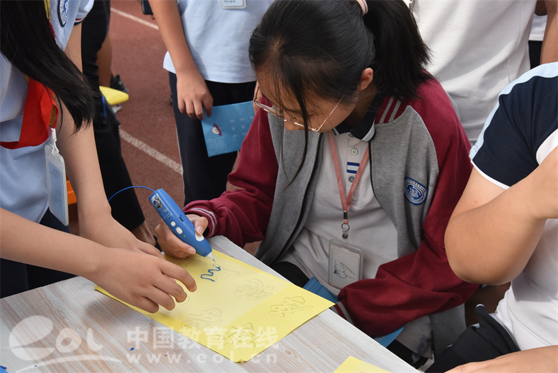 3D打印神奇高能,在打印机下创造精品,鬼斧神工,同学们亲兵上阵,手持3D打印笔,创造属于自己的作品。