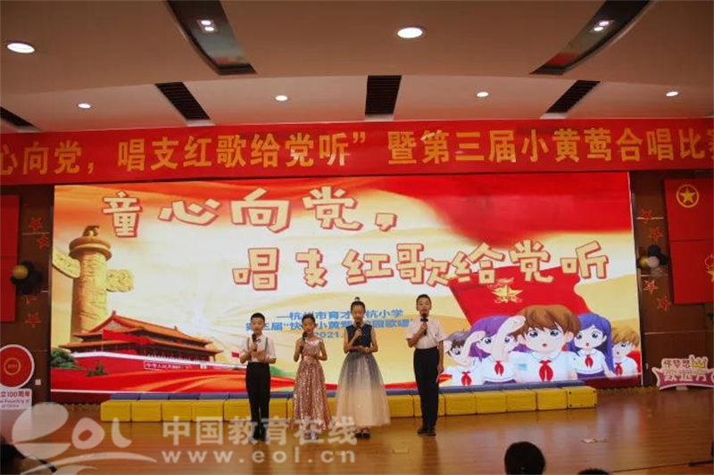 金宝搏188入口 浙江站讯 (实习记者 鲁少辛)从南湖红船到八一枪声,从井冈号角到长征壮歌,从抗日烽烟到建国大业,从改革春风到中国梦,中国共产党自强不息、与时俱进,书写着永载史册的光辉篇章。为了庆祝中国共产党成立100周年,激励学生学党史,感党恩,努力奋进,6月29日上午,育才京杭小学举行小黄莺合唱比赛,全体学生齐聚报告厅,共同唱响红色经典。