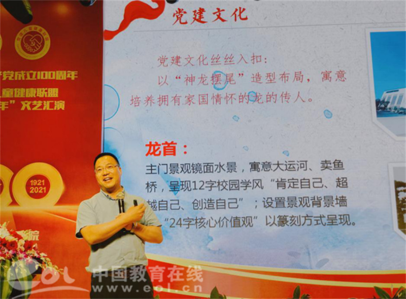 随后,罗才军书记作了以《润物细无声——浙江省杭州市卖鱼桥小学“党的知识进课堂”探索汇报》为题的党建经验报告。罗才军书记介绍了卖鱼桥小学一系列党建举措,包括学校整体党建文化形成了“神龙摆尾”模式,渗透校园方方面面;学校追本溯源,将党建理念融入学校整体文化理念,深入开展了“党的知识进课堂”教育活动。