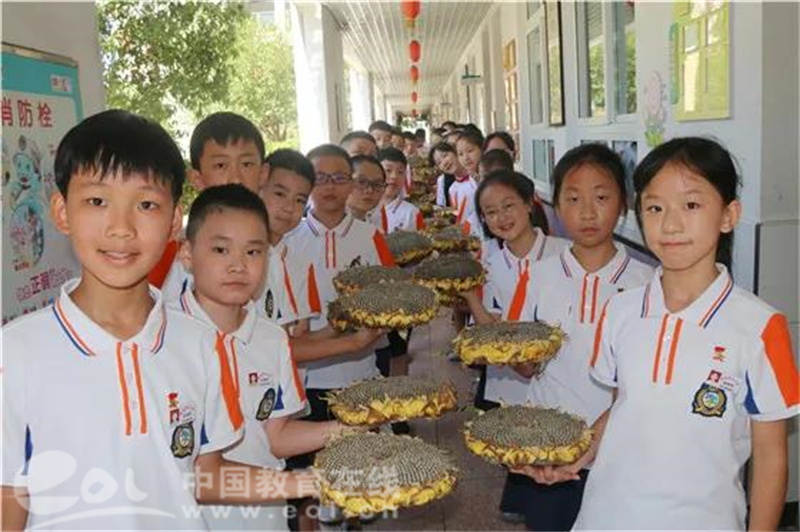 一(1)班章晟瑞同学高兴地说:“这是我第一次看到长在花盘上的瓜子。”