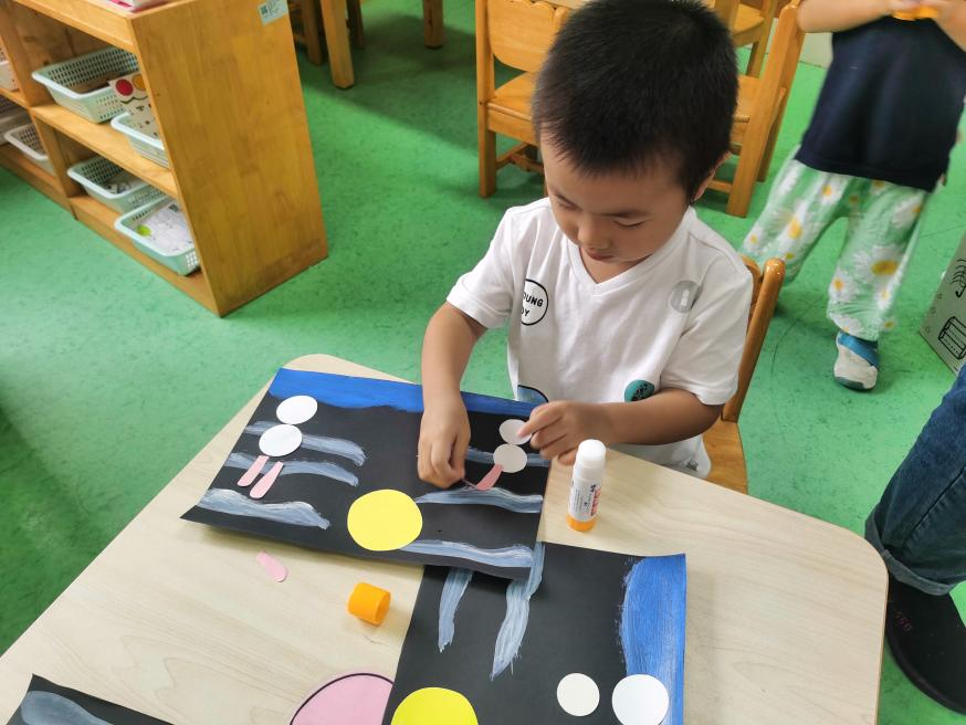 大班的小朋友们在爸爸妈妈的引导下,一起观察了每天月亮的变化并记录下来。小朋友们还亲手制作了不同的中秋节灯笼,有手绘的灯笼、有水墨画图案的灯笼等等。
