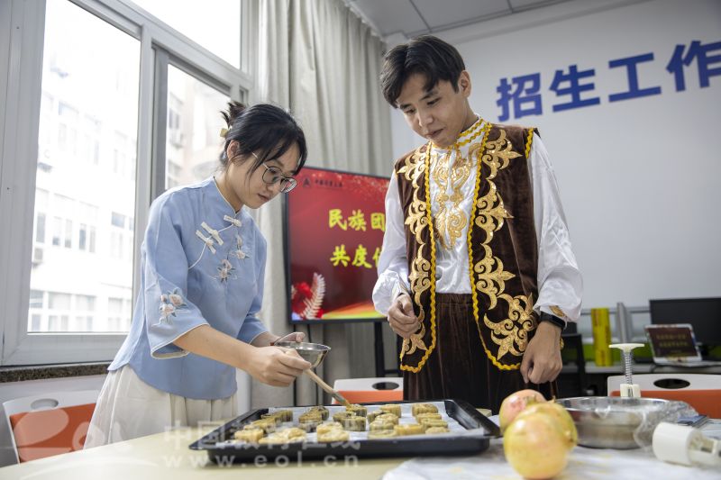金宝搏188入口 浙江站讯(记者 张可宁 通讯员 王伊米)“每逢佳节倍思亲,刚来到中量大就感受到了浓浓的佳节氛围,还有这个大家庭带给我的温暖和感动。”在制作月饼的过程中,来自新疆塔吉克族的2021级新生娜迪亚·阿尔曼江说。9月17日,中国计量大学举办“浓情中秋共团圆、月饼飘香中量大”多民族学生迎中秋活动。揉面团、包馅料、印花纹……来自8个民族的多名学生精心制作手工月饼,感受量大温暖,体验传统文化,每一道力度,每一种配料的使用都揉进了浓浓的民族情。“民族团结一家亲,中秋节是一个家人团聚的日子,学校就是全体师生的大家庭。”中国计量大学党委副书记程刚说。(古丽珠玛/文 武亚东/摄)