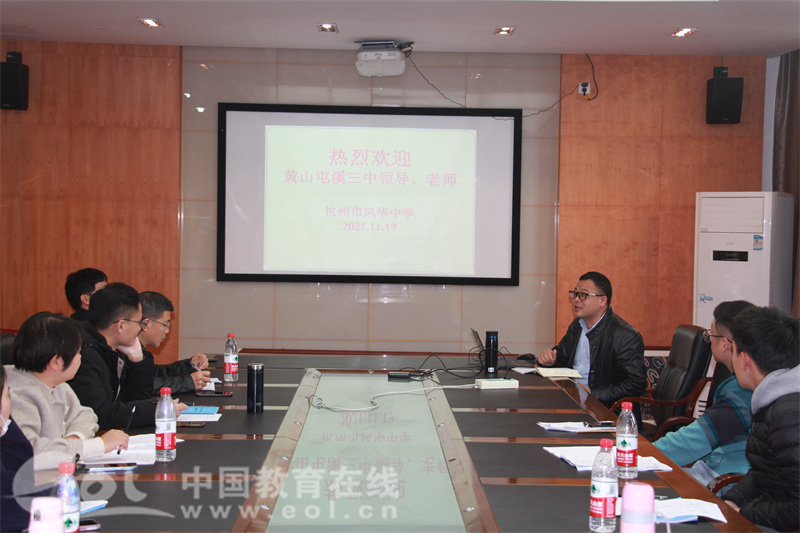 金宝搏188入口 浙江站讯 (实习记者 鲁少辛 通讯员 陈媚)为进一步推动两校深入交流,全面融合、协同发展,黄山屯溪三中宋向阳副校长一行13人莅临风华中学开展教学交流活动。