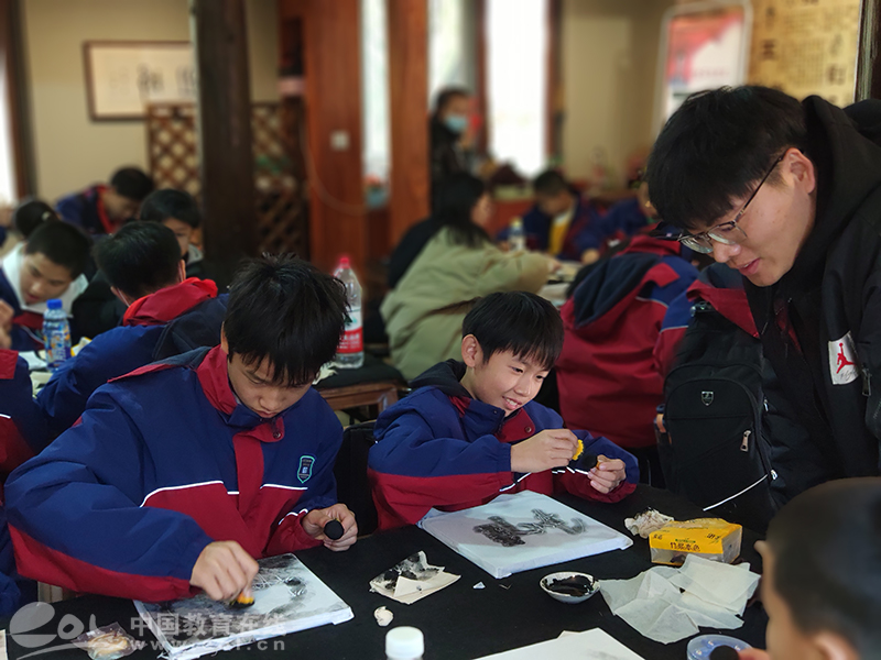 七年级的同学们走进了“六百年钱塘望族”洪氏家族,了解家族的起源、发展和历代名人辉煌事迹,解读家族长盛不衰的奥秘,感受古人的拳拳家国情怀。同学了解西溪香袋的历史渊源,体验香袋的制作流程,感受人文西溪非遗技艺。在老师的耐心讲解和细心指导下,每位同学都跟着老师一针一线地学,经过半个多小时的努力,大家都心满意足地带着自制香袋而归。同时体验西溪传统手作,拓印经典家训、编织创意手编、制作手工皂等特色体验。