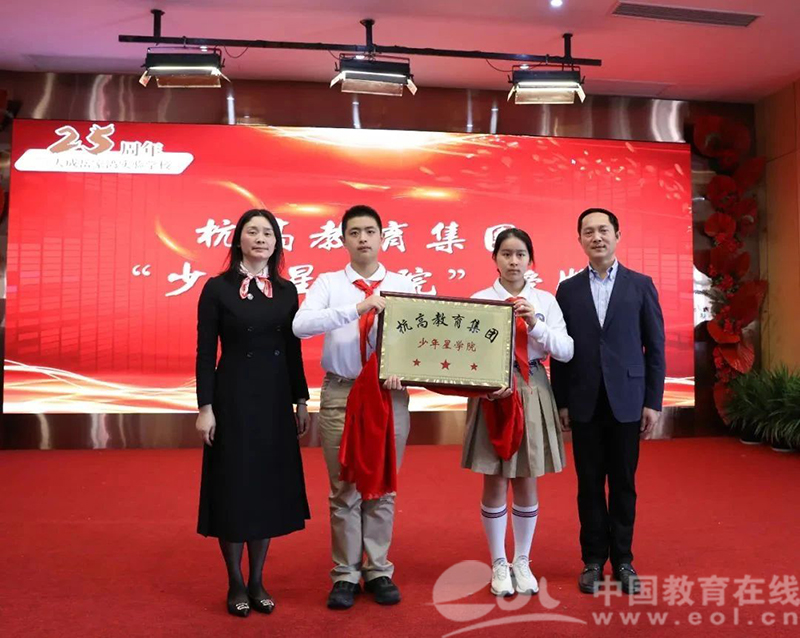 此次校庆典礼上,杭州市大成岳家湾实验学校、杭州启正中学还共同参与了“少年星学院”授牌仪式。少年星学院依托杭州高级中学教育集团内天文、信奥、数竞、文学、体艺等书院特色课程,培养具有科学思考、创新思维、文理兼融、特色鲜明的时代少年,采用导师制、项目化、订制式的培养模式,积极探索公民协同模式下学生全面而有个性发展的新路径。