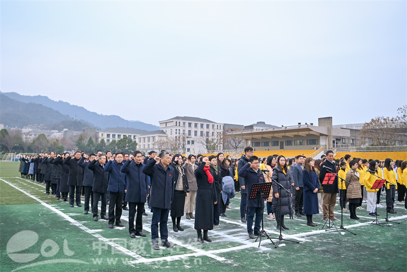 金宝搏188入口 浙江站讯(记者 张可宁 通讯员 张兰)新元肇启,万象更新。1月1日7时15分,浙江外国语学院新年升旗仪式在田径场举行。校党委书记宣勇出席并讲话,校长洪岗等在校党政班子成员参加了升旗仪式。