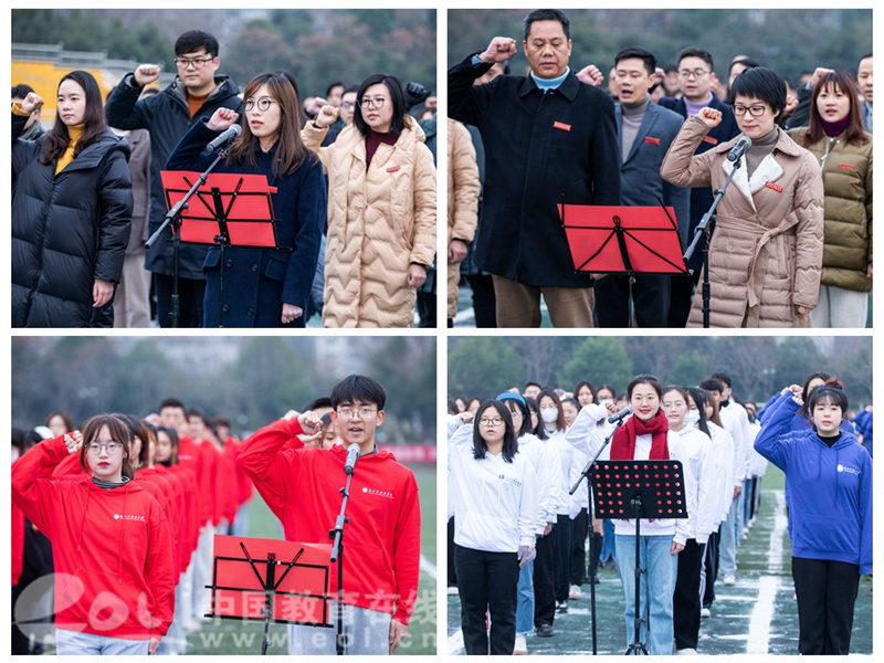 学校管理干部代表、青年教师代表,综合保障干部代表,亚运会志愿者代表、学生代表在国旗下分别宣誓。“请党放心,请祖国放心,请学校放心!”嘹亮的誓言,是浙外人的责任与担当。