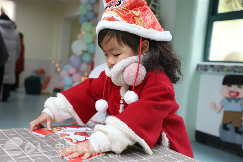 如虎添翼智慧福则是孩子们在开学当天获得的。走进幼儿园,孩子们就能看到一楼走廊两边桌子上摆放着的老虎拼图。老师们根据孩子们的年龄特征提供了不同难度的拼图,只要拼图成功,就能拿到智慧福。为了获得智慧福,孩子们非常努力,用最快的速度完成了拼图。