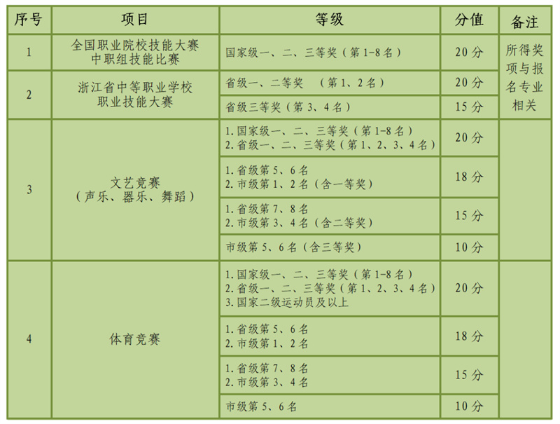 (四)素质特长项赋分:满分20分。