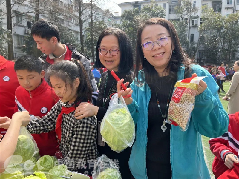 在义卖摊位中,还有一个与众不同的摊位,那就是大队部的“爱心助农蔬菜摊”,大队委员们通过爱心义卖的形式,帮助农民伯伯将滞留的蔬菜销售出去,师生们纷纷采购,将爱心传递。