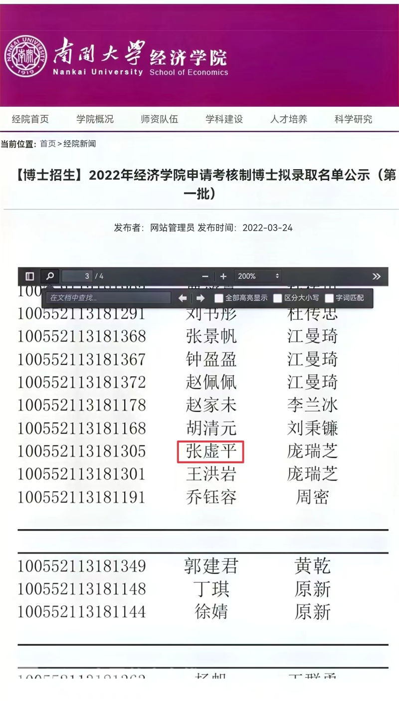 不怕万物阻挡,只怕自己投降。从2020年9月开始,张虚平在武鑫和陈翔两位导师的指导下,仅用了一年半的时间,便完成了7篇英文论文的写作,其中5篇已被SCI和SSCI期刊接收发表,其余2篇正在审稿与修改中。这样的学术高产,为张虚平在申博的路上打下了良好的科研基础,使得他在2021年下半年的博士申请中,有幸得到多位来自南开大学、东南大学、华东理工大学和暨南大学博导的认可。经过慎重考虑,他最终选择了南开大学,2022年3月24日,正式被南开大学经济学学院博士录取。