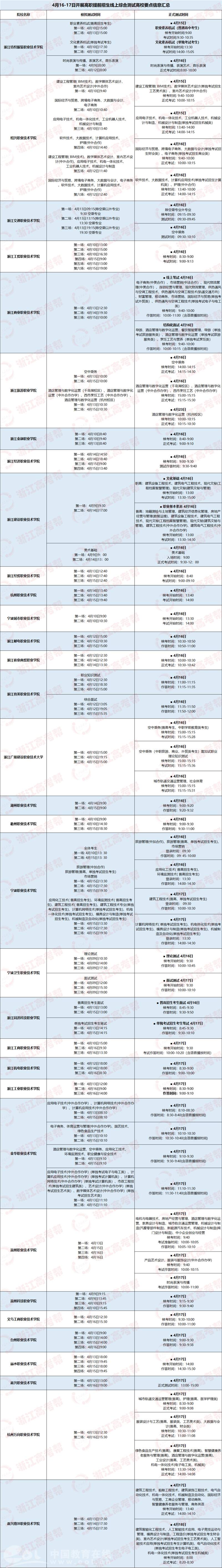 ※ 各校具体的模拟测试时间和正式考试时间汇总如下,如有出入或最新情况,请以学校公布为准。