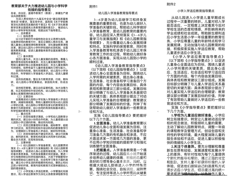 特殊时期,为持续推进幼小衔接工作,缓解幼儿及家长的焦虑情绪,全体教师都在家认真学习《金博宝最新官方网站查询网址 关于大力推进幼儿园与小学科学衔接的指导意见》、《幼儿园入学准备教育指导要点》和《小学入学准备适应教育指导要点》的文件,深度解读当前幼小衔接教育指导思想,为研讨做好充分的前期准备。