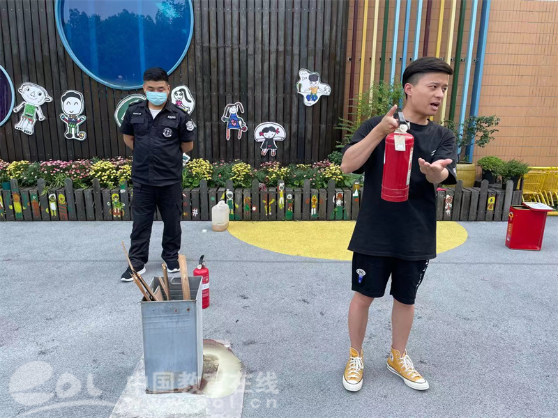 伴随本次认识消防器械的契机,东新实验幼托园还组织老师们进行了现场的灭火器实际演练,通过讲述手提式干粉灭火器的使用方法,让园区教师们在直观感知、实际操作和亲身体验中,掌握了灭火器和消防器材的基本使用方法。