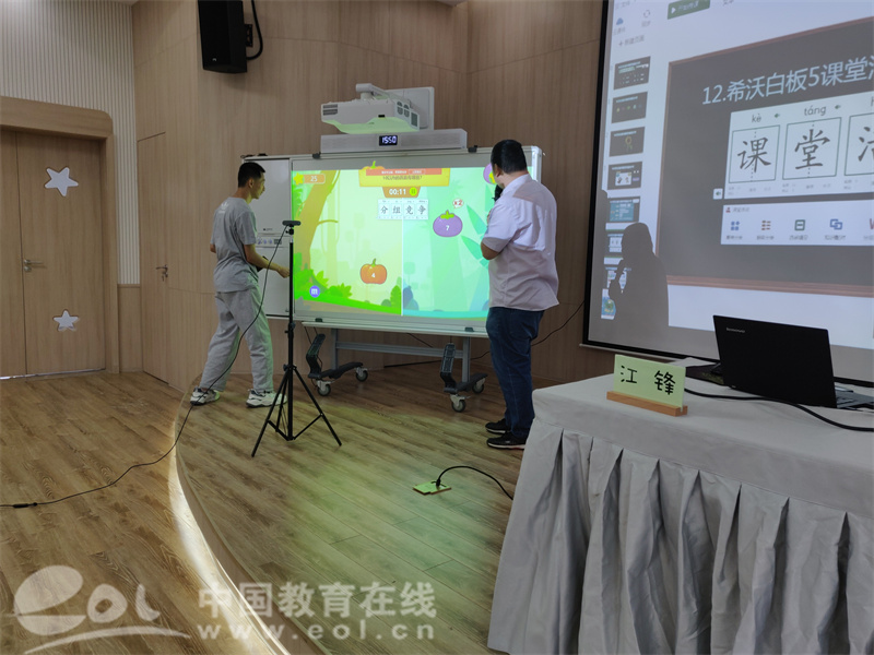 白板课堂活动内置多样模板,如趣味分类、分组竞争、判断对错和趣味选择等,给予授课教师更多选择,使得教学内容呈现方式变得多元化,激发与调动幼儿学习的主动性、积极性,有效提升了教学活动的互动性与趣味性。为了帮助教师们更具体、直观感受“希沃白板5”强大授课功能所带来的轻松活跃的教学氛围,江老师还发起了现场互动,邀请教师进行课堂竞赛,切实体验智慧课堂、数字化教学的魅力。