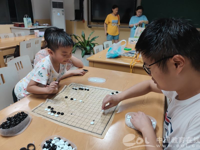 傍晚,天空下起了雷阵雨,三棋室愈加热闹了起来,“双炮嘚嘚将!吃!”三棋室里传来一声声欢声笑语,旁边的自习室却别有一番风景,躲雨的家长和孩子们在自习室里找到了心仪的书籍,饶有兴致地阅读了起来。这场雨,仿佛放慢了大家的脚步,也给三棋室和自习室增添了一丝浪漫愉悦的氛围。