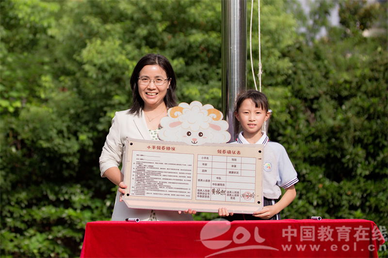 回校后,在全校同学的见证下,301中队与文新小学府苑校区签订“小羊领养协议”,中队长黄依然说,他们会给予两只小羊更精心地呵护和更科学地喂养。相信在队员们的齐心协力呵护下,小羊一定会健康、快乐地成长。