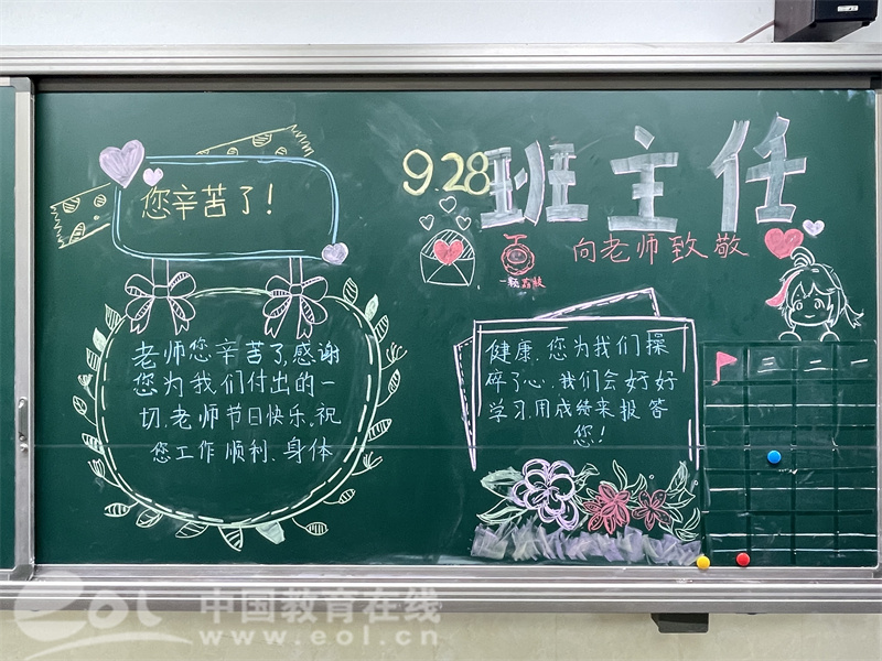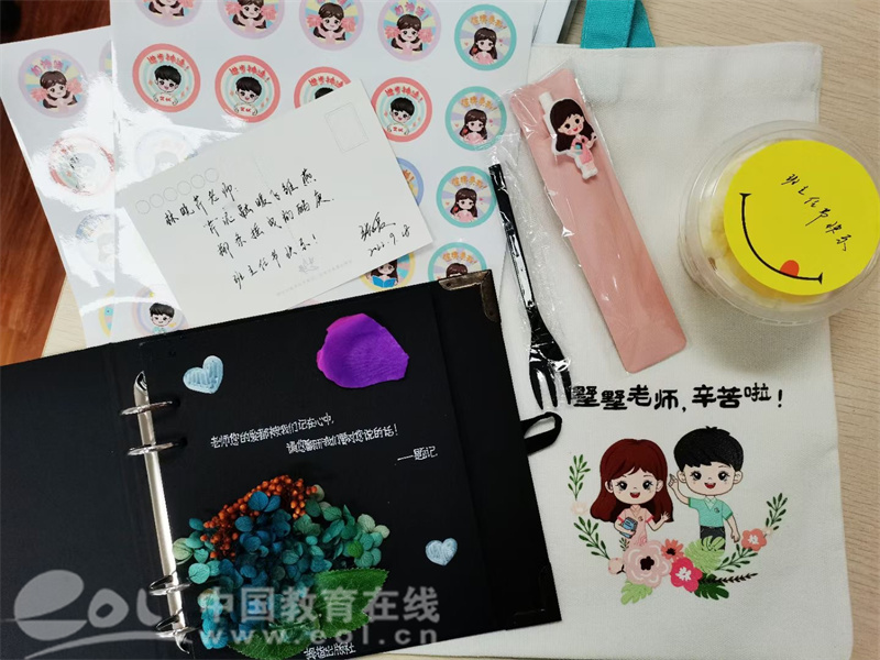 不仅如此,学生们还自制了贺卡与书签,贺卡上写满了全班同学的名字,饱含着对班主任的深情。还有的班级则为班主任送上了“爱心祝福”,一张张“爱心”卡片,派送到班主任手上,表达了孩子们的感恩之情。