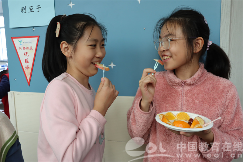 604班的徐欣悦通过自己的巧手做了一盘精美的切片水果拼盘,并取名“薄荷水果蛋糕”。“薄荷味道很特别,外面围着一圈橘子,形状很像蛋糕,所以我给它取了这个名字。”徐欣悦说。