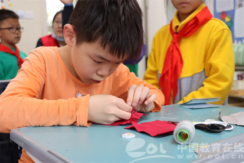 丰富多彩的劳动体验项目让同学们感受到劳动的创意和喜悦。一盘盘食材变成美味佳肴,鸡蛋在锅中翻滚,创造舌尖上的美味;银针在他们指尖灵活穿梭,纽扣便牢牢地固定在了衣服上。同学们在闯关中在劳动中享受乐趣,感受生活的美。