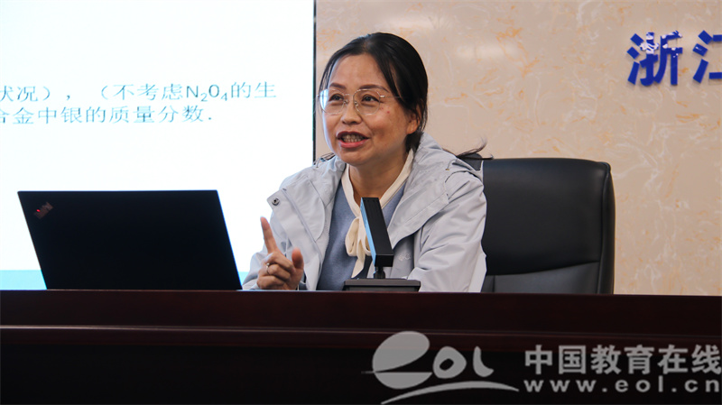2022年杭州市教育科研成果(综合课题)二等奖获得者杨海丽老师,向大家介绍了课题《认识·分析·建构·应用·迭代——人教版普通高中化学新教材的“模型认知”教学探索》撰写的研究缘起,分享了自己科研的演变过程,介绍了课题的研究内容。杨老师表示,教育科研是一个不断深化的过程,在研究时要结合教育实践,具体深入展开,以提高教育科研的实效和深度。