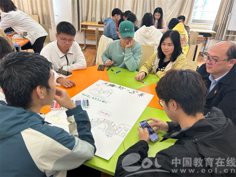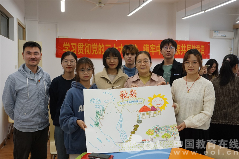 分组讨论环节,支部党员和民族学生一起畅谈交流,以家乡的变化为视角,共绘以铸牢中华民族共同体意识为主题的海报。