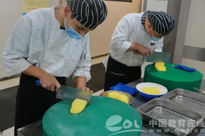 洗切工比武包括刀工、计量、计价、仪容仪表四项,涉及窗口服务的各个环节,与师生的用餐体验紧密相关,哪个环节都不能掉链子。获得洗切工组第一名的是一位名叫郭二象的阿姨,15年以来,她每天至少有三小时的功夫花在切菜上。