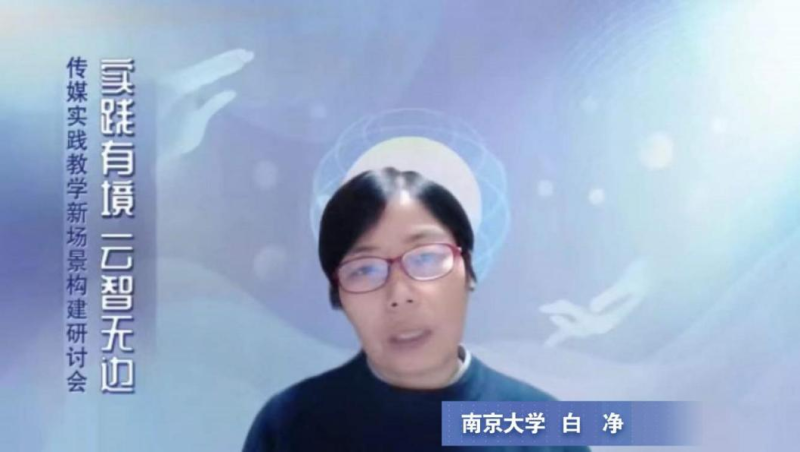 南京大学新闻传播学院传媒国家级实验教学示范中心主任白净教授作了题为《虚拟制片教学探索和思考》的主题发言,主要从元宇宙发展背景、具体教学实践、学生作品等方面进行展开,介绍了数字人、智能3D与数字孪生、VR、AR等技术在实践教学中的应用,分享了学生创作的数字人作品,通过以赛促学全面提升了学生的新技术新业务实践创新能力。