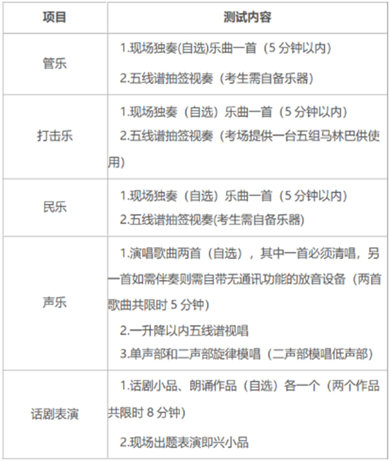 文化课测试:考试科目为语文、数学、英语。具体考试安排及要求详见文化课测试准考证(在报名系统下载打印)。