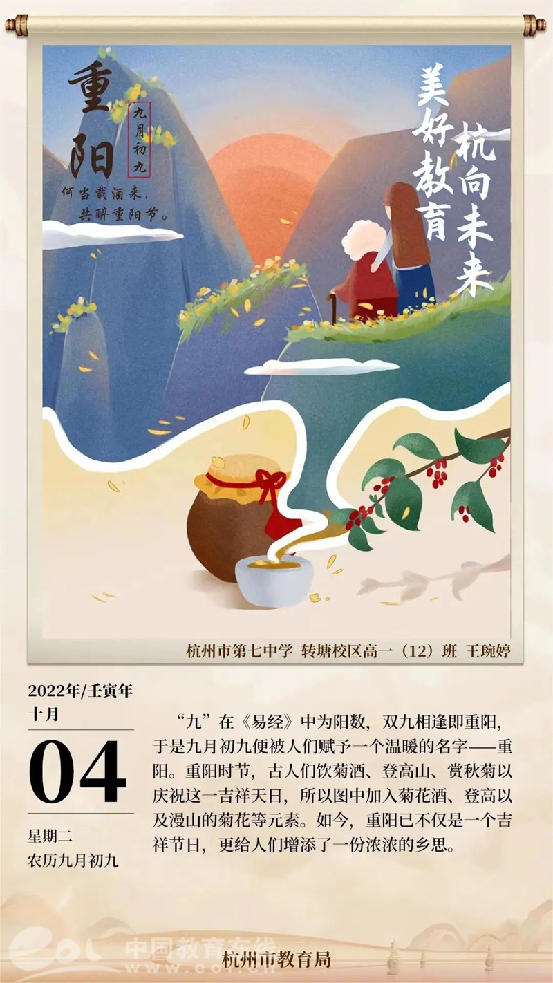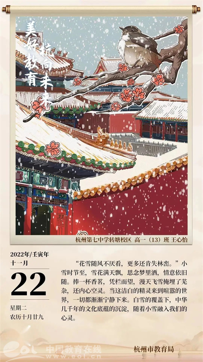 在365页日历中,二十四节气和节假日创意手绘惊艳了很多人,而这些手绘中的很多精品由杭州第七中学学子绘就。