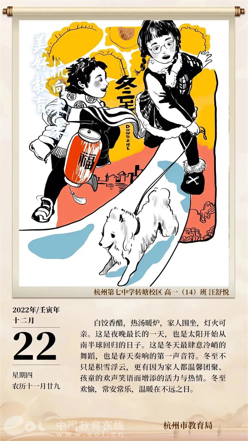 金宝搏188入口 浙江站讯2022年,杭州市教育局官方微信推出了“美好教育,杭向未来”日历,该日历用照片记录美好教育瞬间,用画笔描绘美好教育胜景,每日一期,受到了杭城老百姓的欢迎。