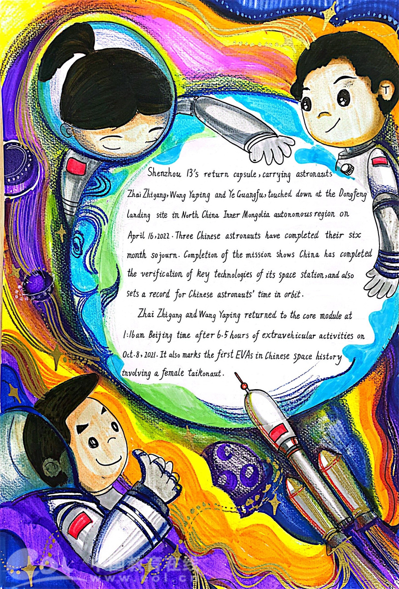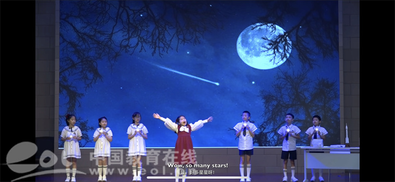 讲好中国故事,赓续优良文脉。苍穹之顶,星空璀璨,承载着中华民族对美好未知永无止境的积极向往。杭州娃哈哈双语学校Starry Sky Gazing和杭州市钱江新城实验小学The Mother Who Picked the Stars古今贯通,讲述着两位中国女性的天文故事,在舞台上,王贞仪和王亚平进行了时空对话,分享了“中国梦,飞天梦”实现的喜悦,同时,也展望了中国人“探索宇宙”的远大征程。