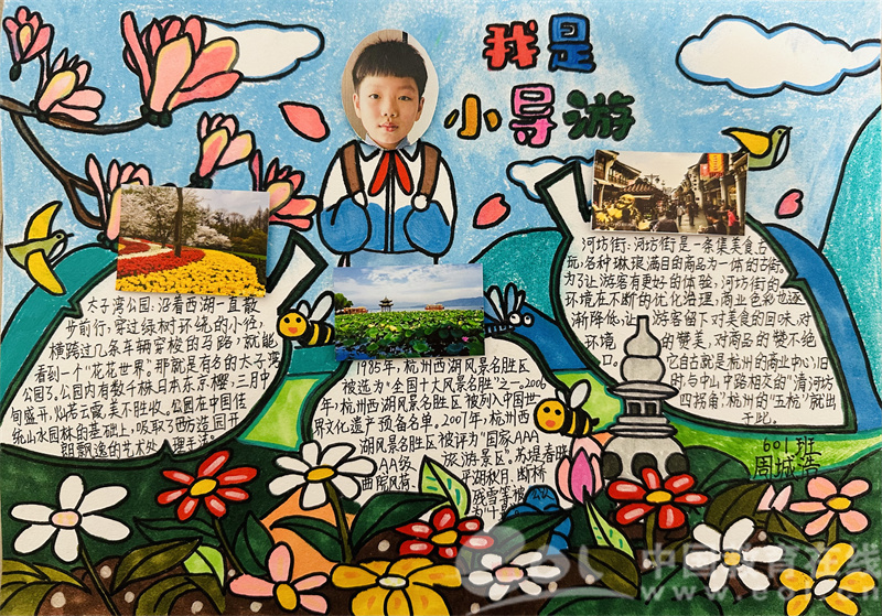“我是亚运馆向导”。为了当好小小东道主,潮娃们走进亚运场馆,考察各个场馆位置,用英语制作了一份份精美的手绘地图,并配上说明。