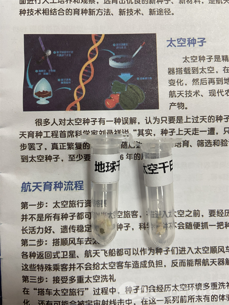 聂玲秘书长给孩子们介绍了航天育种史、航天育种的流程及太空种子相关知识,以及它与普通种子的区别,对提高我国果蔬产量的意义等。她说:“我国的太空育种始于1987年,先后30多次利用返回式卫星、神舟飞船、天宫实验室和其他返回式航天器搭载植物种子,培育出700余个航天育种新品系、新品种。”