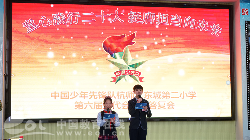 近期,东城二小的报告厅举行了“第六届少代会提案答复会”。现场邀请了团区委书记赵丹晨、九堡街道办事处副主任朱红梅、九堡街道公共服务中心副主任王伟琴、中央广播电视总台浙江总站记者杨少鹏、富阳校长正职培训班的12位校长们,东二的校长、书记,各部门负责人以及校家委主任、校外辅导员等。