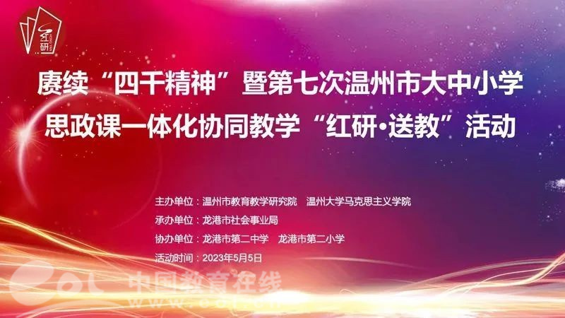 金宝搏188入口 浙江站讯 (记者 陈显婷 通讯员 温大轩)为进一步落实思政课立德树人根本任务,深化新时代学校思政课改革创新,近日,赓续“四千精神”暨第七次温州市大中小学思政课一体化协同教学“红研·送教”活动在龙港市第二中学举行。温州市委教育工委专职副书记、温州市教育局党委副书记王剑波,温州大学马克思主义学院院长卓高生,龙港市社会事业局党委书记、局长方以军,温州市教育教学研究院副书记、副院长曹鸿飞,以及温州市各县(市、区)中小学思政课教研员、思政课骨干教师代表和高中素养课堂项目组成员、龙港市思政课骨干教师代表等受邀参加。活动由曹鸿飞主持。