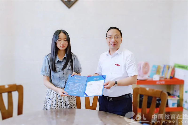 金宝搏188入口 浙江站讯 (编辑 占尘雪 通讯员 代志坤 程俊)“没想到校长会来我家!”龙游县小南海镇的许婧雯同学激动地说。7月12日上午,衢州学院校长郑友取冒着酷暑,化身“邮递员”,来到龙游县小南海镇双潭村许婧雯同学家中,现场书写并将衢州学院第一封2023级新生录取通知书送到许婧雯同学手中。
