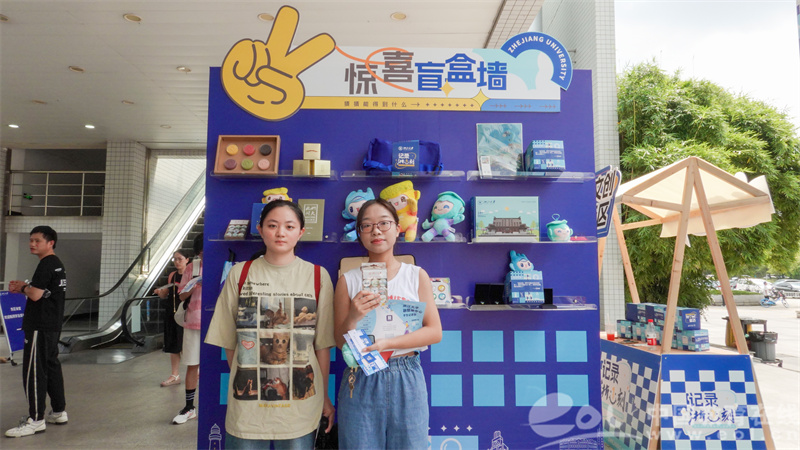 最令新生们惊喜的,莫过于抽取惊喜盲盒。在2天共4个开放时段内,每时段前250名2023级新生可领取原创可盖章门票一张,每完成一项打卡活动就可盖上一枚浙大专属印章,任意完成2个打卡项目就可抽取一份惊喜盲盒。幸运的同学还有机会抽到大奖——求是饼。