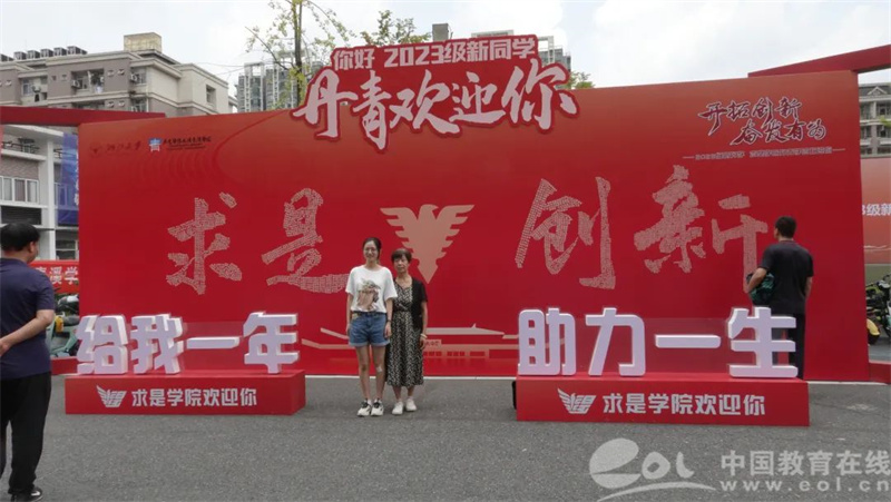 在浙大求是学院丹阳青溪学园,一块巨大的“创新红”展板格外醒目。展板上印着近1800名丹青学园本科新生名字,组成了浙大校训“求是创新”四大字。现场,新生纷纷寻找自己的名字和家人们一起打卡留念。
