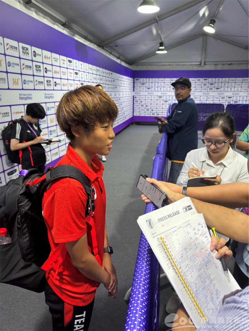 9月28日 日本队VS越南队 温大詹智闵博士在混采区为日本队选手翻译